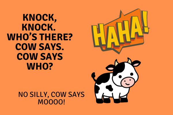 Knock, knock. Who’s there? Cow says. Cow says who? No silly, Cow says moooo!