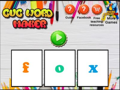 I have been using a version of this for years as a warmer or an ending of the lesson, it fits perfectly for a ten minute activity so help students put together phonetic sounds into simple CVC words. The one i was using was starting to look a little dated so i decided to make my own version.