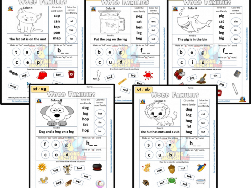 A set of five word family worksheets to help teach and practice word construction and blending